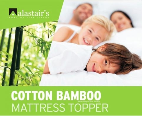 The Alastairs Cotton Bamboo Blended Mattress Topper 1000 GSM has a filling that is a combination of bamboo fibre with microfibre to give you the loft, support and comfort for a perfect night's sleep. Warm in winter and cooling comfort in summer. A generous 1000gsm filling with a stretch skirt to fit most bed sizes.