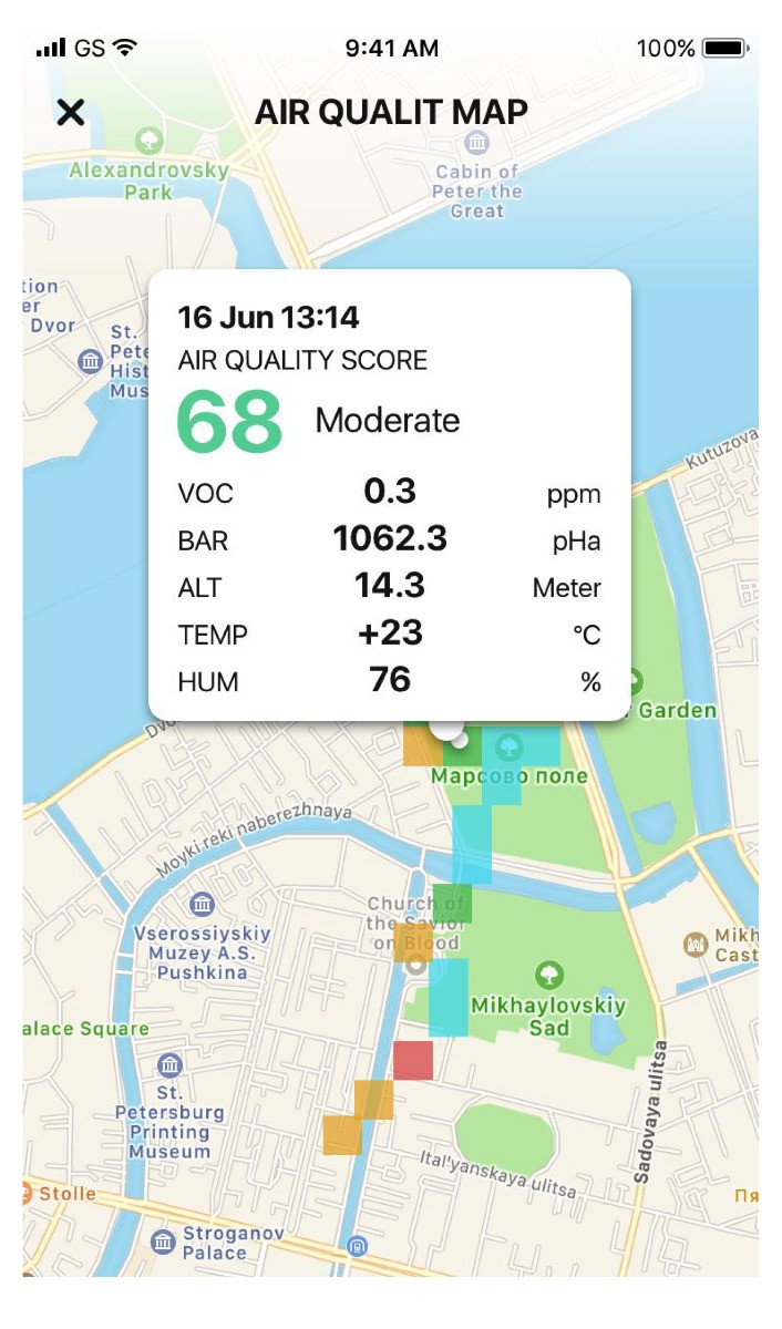 With Atmotube, you can also contribute to global air quality data crowdsourcing: all gathered data on air quality will display on your personal map and, if you wish, your gathered data can be shared with others via the Global Air Quality Map.