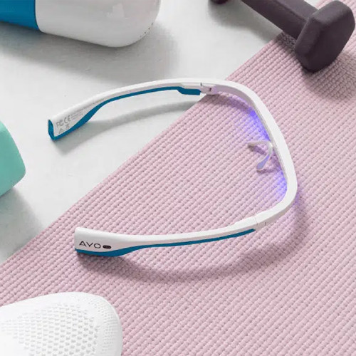 AYO's premium light therapy glasses safely and gently expose users to beneficial blue-turquoise light.