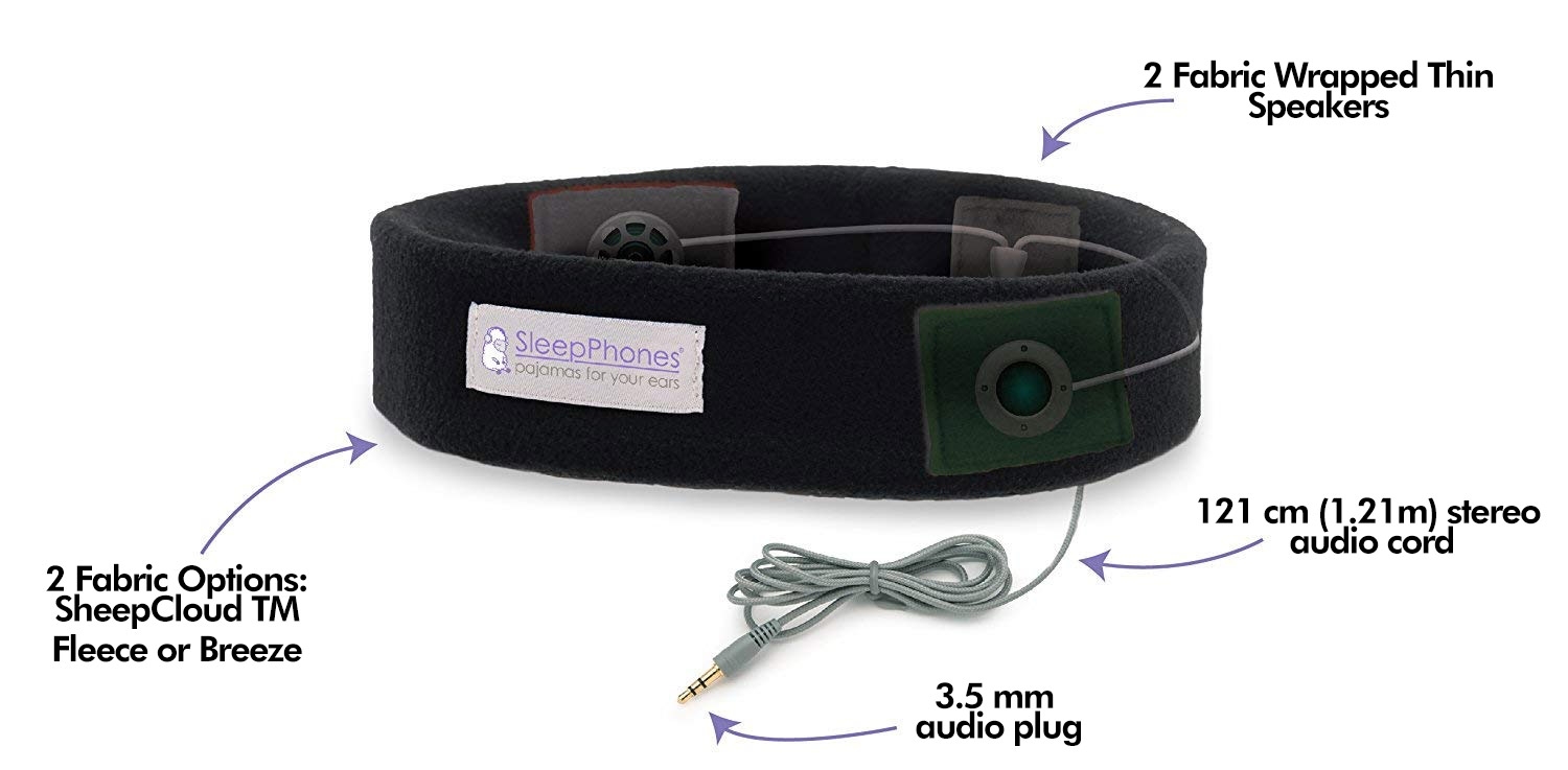 SleepPhones Classic feature superior sound quality with eco-friendly electronics. Super thin, high-quality speakers are inside of a soft, cozy headband, allowing you to lay on your side comfortably, without earbuds or headphones digging into your head.