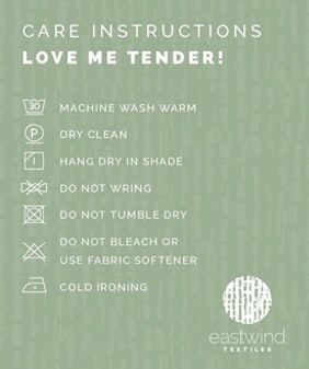 Note: We recommend you use gentle washing liquids or powders as they guarantee to be kind to your fabric. We recommend some of the natural ones found at your local supermarket such as the Earth Choice Wool & Delicates. You may choose to continue to use your regular detergent, just be mindful that some do contain brighteners and bleach which may have a staining effect on your sheets. Always use a gentle cycle and do not put in the same wash cycle as any abrasive fabrics. If you need to remove stains from your sheets, look for something natural from your supermarket. Again Earth's Choice has some excellent non-bleach or chlorine based products.