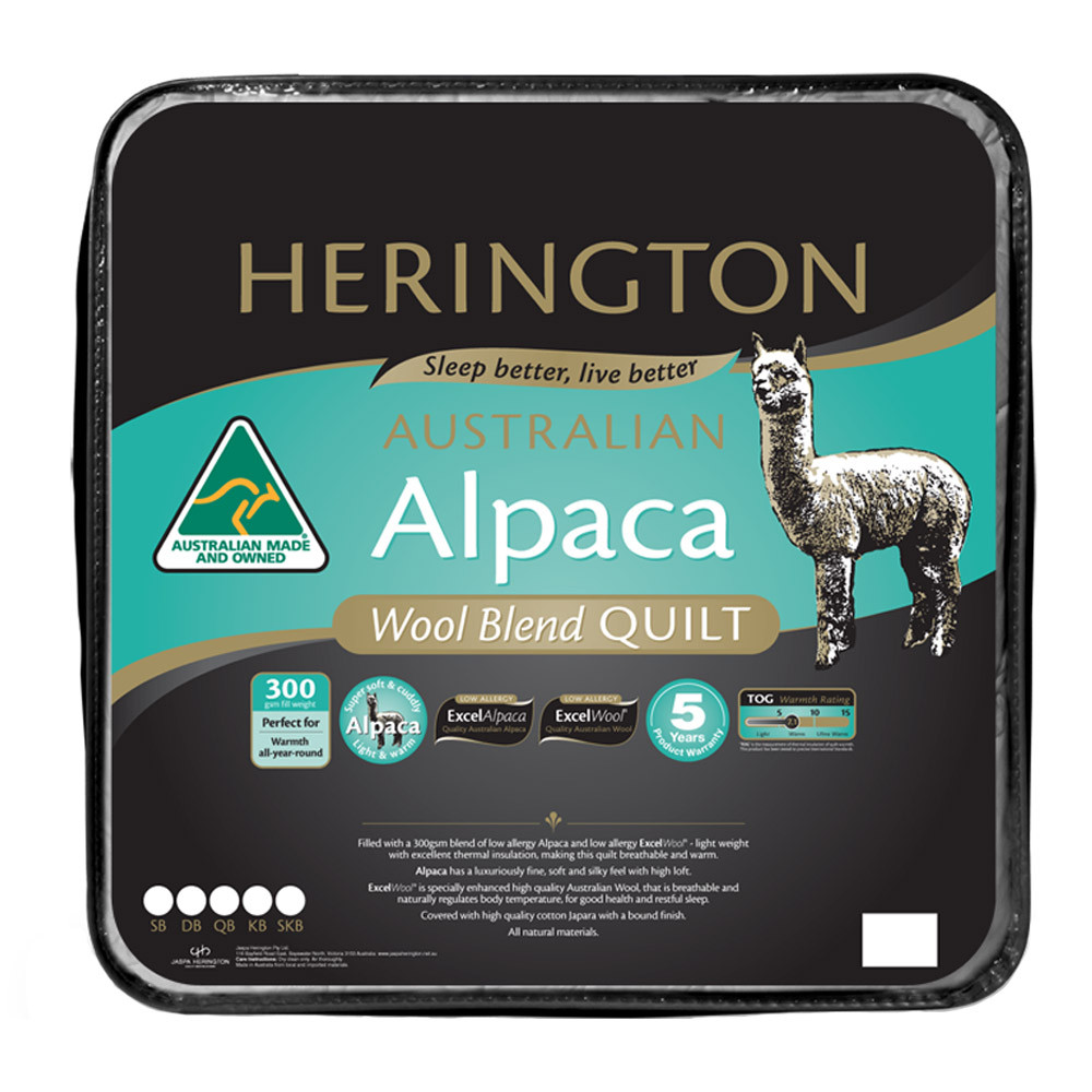 The Herington Alpaca Wool Blend quilt is available in a range of sizes to perfectly suit your needs: