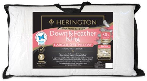 A 37% larger King size pillow (50cm x 90cm approx.) filled with low allergy ExcelDown® - specially enhanced Down fibres promoting good health, superior comfort, support and temperature control throughout the night. Covered with silky-smooth, high quality, piped and gusseted cotton-rich.