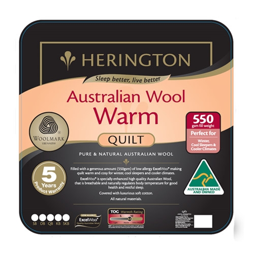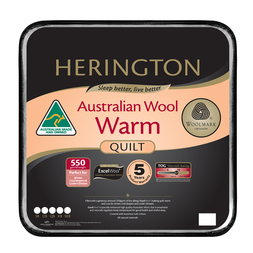 Filled with a generous amount (550gsm) of low allergy ExcelWool making quilt warm and cosy for