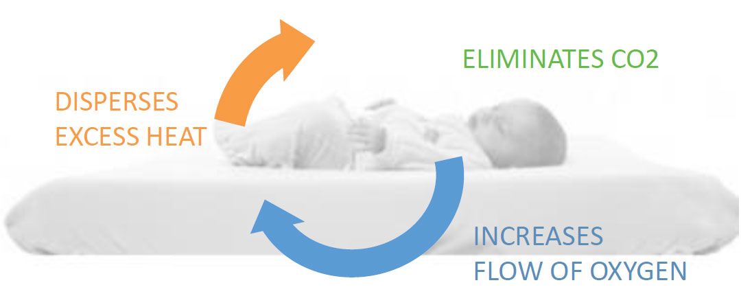 The netting is supported by venting channels so baby is placed in an environment where a natural airflow is permitted.