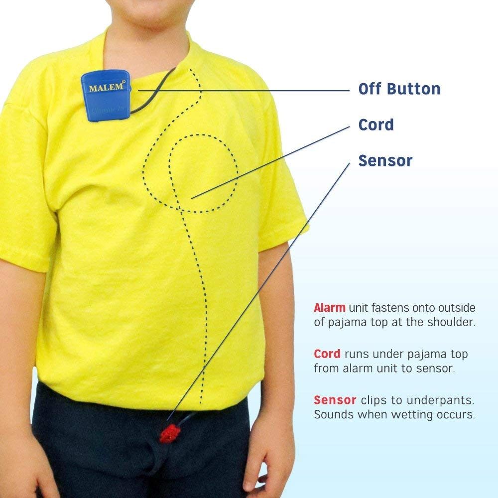 This Malem Ultimate Selectable Bedwetting Alarm combines sound, vibration and light to help even the deepest