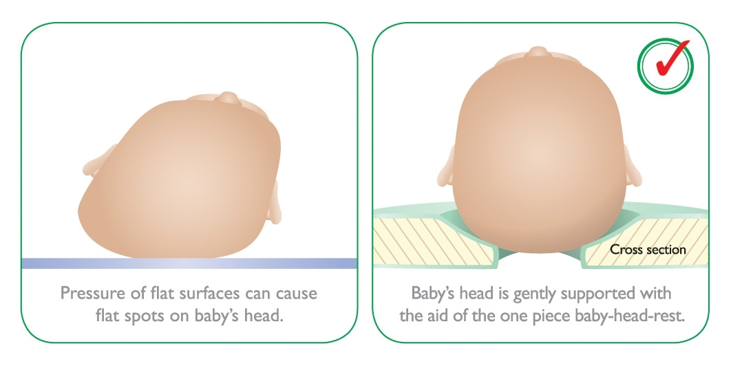 If within 4 months of birth, a flat spot is detected, the baby head rest may prevent it from worsening and can often correct the condition.