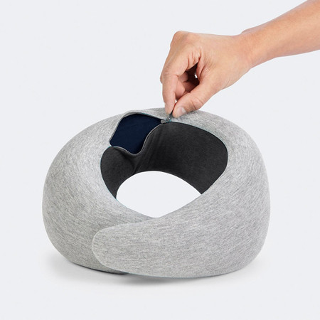 The secret behind OSTRICHPILLOW® GO's unique comfort lies inside. The viscoelastic core of the pillow is made out of high-sensitivity memory foam. The foam core has a protective cotton fabric layer around it. This distinctive-looking travel neck pillow is designed with a higher side and a lower side, so you can decide which is more comfortable for you to relax and unwind.