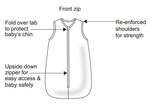 Tab to cover top of zip to protect chin, double ended zip for easy access, protector tab at base of zip for extra security. Designed in the softest, highest quality cotton, and have been tested and approved to Australian Standards and British Safety Standards. Perfect for room temperature 24-27*C.