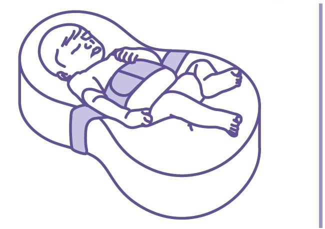 The adjustable, removable wedge (placed below the fitted sheet) adapts the Cocoonababy to baby's size and provides him with support in the curved posture