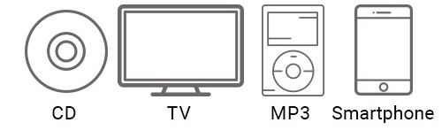 1/8" (3.5 mm) plug compatible with most devices with a 3.5mm socket, including iPhones, iPods, MP3 players, radios and televisions