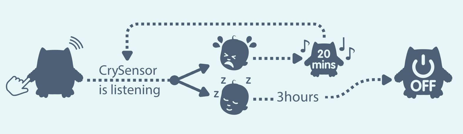 Tip: To activate the CrySensor with leaving Ollie playing for 20 mins, Hold the right wing for 5 seconds (whilst your choice sound is playing)