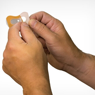 Remove the strip from the packaging and peel off the paper backing, exposing the adhesive: