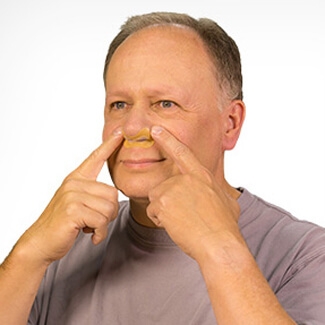 Using a mirror, center the device and ensure that both nostrils are covered completely by the mesh area