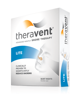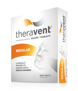 Theravent is a small, lightweight, single-use device that simply adheres to your nose to reduce or eliminate snoring - and is virtually undetectable to the wearer after the first few nights.