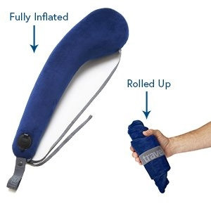 With its patented ergonomic shape, the Travelrest inflatable travel pillow attaches to the 'wings' of an airline seat, headrest of a car, or can be worn 'messenger bag style', nestling against the head and neck to provide support and comfort in flight or on the road. Compact and easily attaches to your luggage